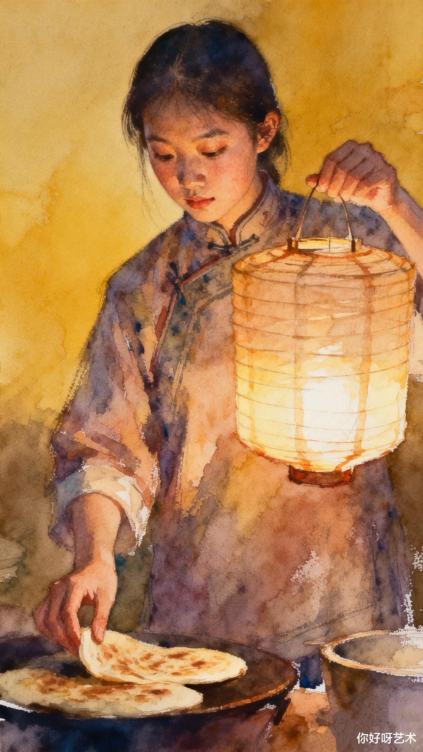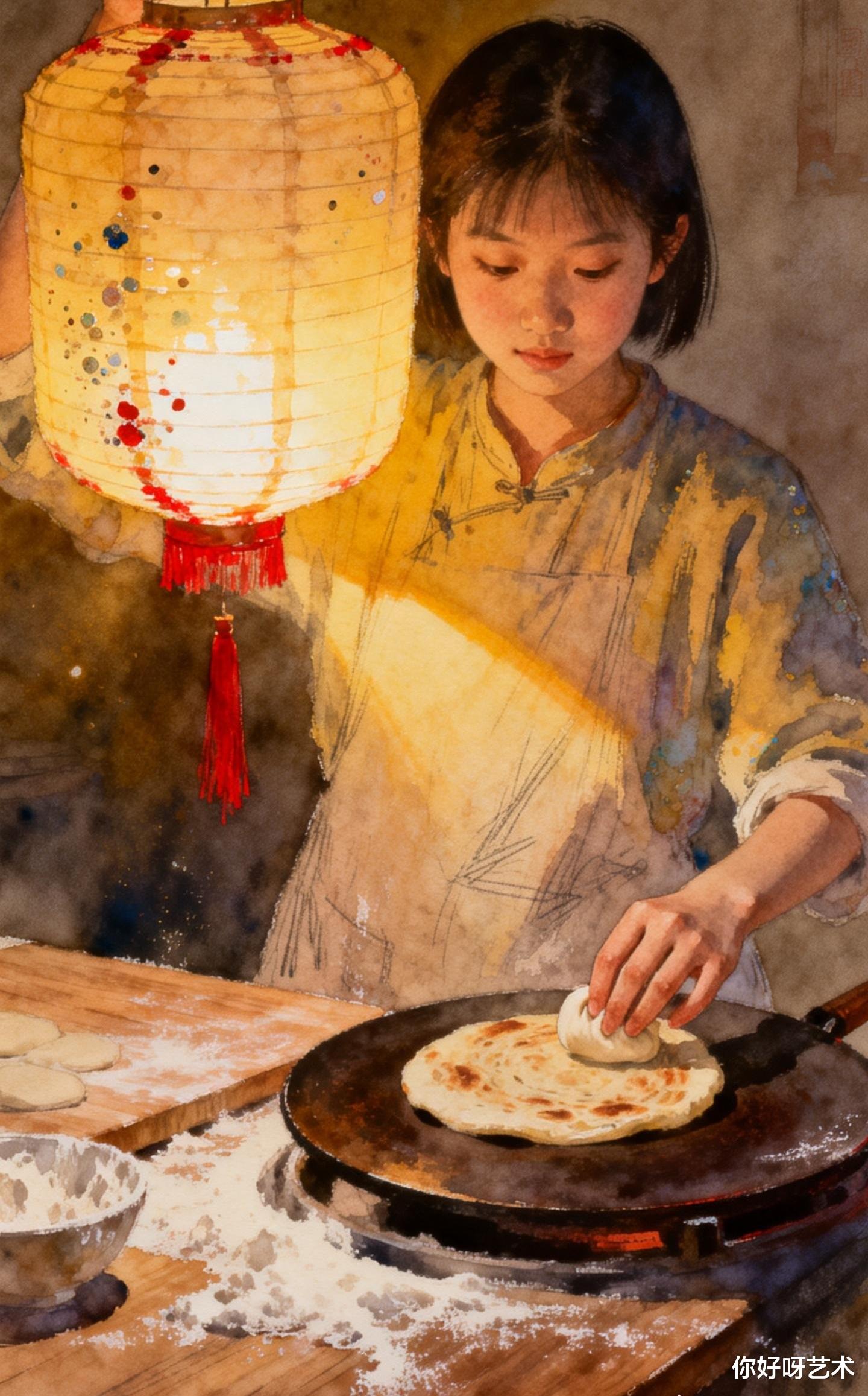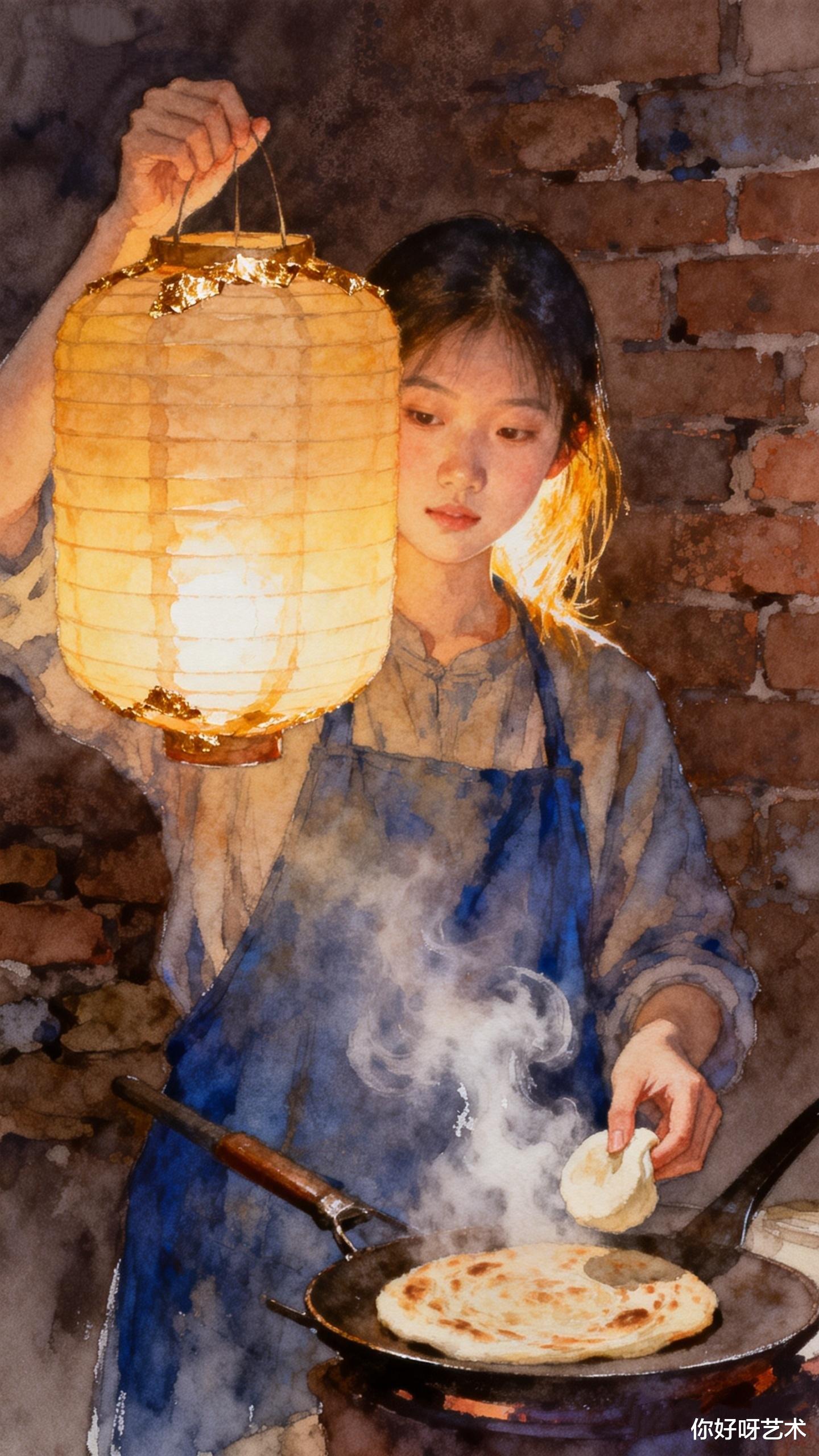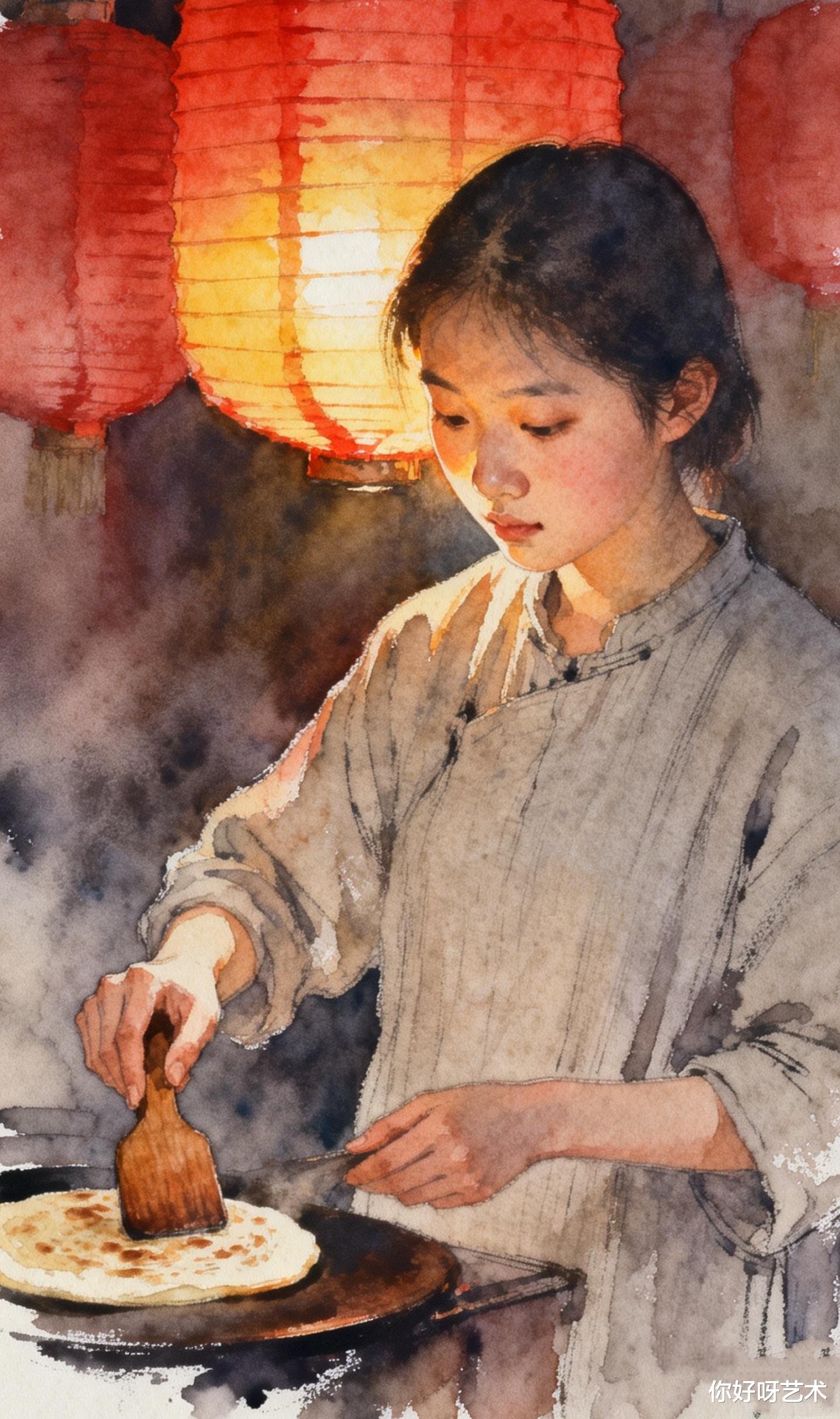 灶台上的颜料盒还敞开着,钴蓝与赭石在瓷碟里静静相融。阿禾轻轻合上盖子,听见窗外传来卖糖人的吆喝声,混着远处孩童的嬉闹,像一曲未完的水彩交响。她系上围裙,准备开始新的一天——因为腊月十九的火烧烙饼,还等着她去烙出更多的层次与烟火。