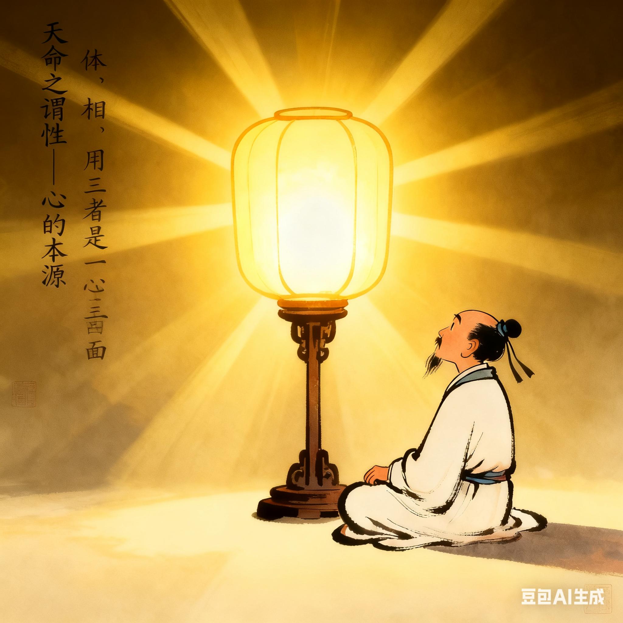 体、相、用三者,本是一心之三面。离体无用,离用无体,如灯与光,光不离灯,灯不离光。识得此心,便知中庸之道不在远处,只在当下这一念清明之中。