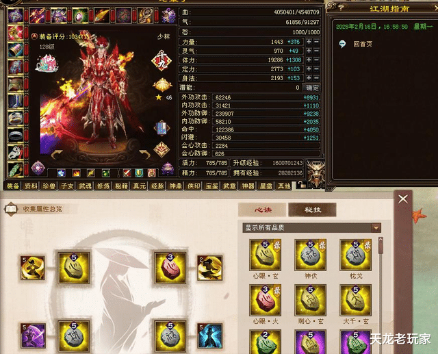 来看看面板:血量454万,蓝量9.1万,命中12.2万,闪避3万,会心攻击2284,会心防御626!