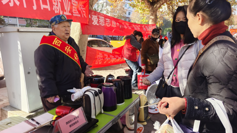 在“集市”的服务类专区里,“西安好人”宋大毛的免费维修小家电摊位前围满了人。他认真检查每一件电器,积极帮助大家解决困难。居民们看着修好的家电,脸上露出了满意的笑容,纷纷对宋师傅竖起大拇指。现场还有免费剪发、免费口腔检查等活动,让居民们受益颇多、纷纷点赞。