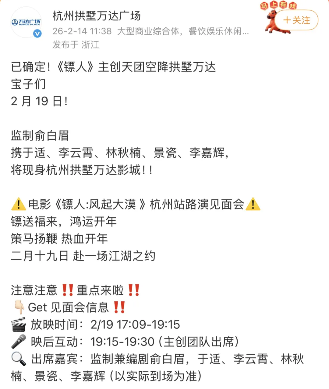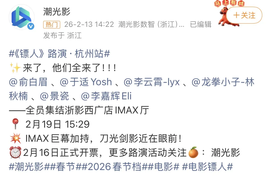 2026春节档多部影片公布了首映、路演见面会行程规划,与观众及影迷粉丝相约春节欢聚。