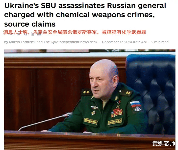 比如,前面说的那位揭露美国生物武器实验室的俄军三防部队司令基里洛夫中将,他被暗杀前刚刚发了报告惹怒西方,明摆着已经上了美西方和乌克兰的黑名单。