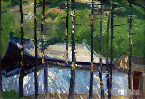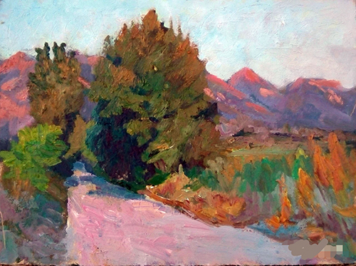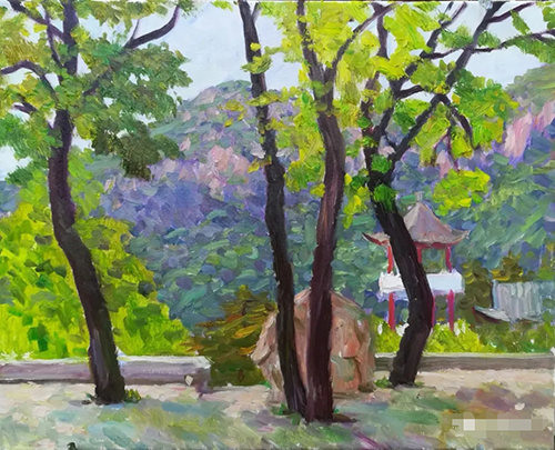 秋天的道士谷数峰无语、万籁俱寂,只有橡子远远近近从树上掉落的声音,这一切都给我的画幅注入了一种莫名的幽寂,那一刻我与这山林融为了一体。有自作的打油诗为证:空谷虚庵径,秋峰斜阳坡,青衫修道者,独听橡子落。