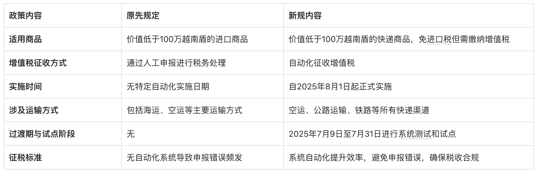 2025年8月1日起,越南海关将对低值进口商品自动征收增值税