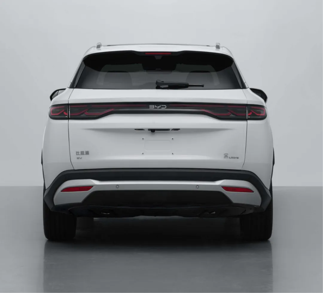 外观设计上,比亚迪宋Ultra EV采用了比亚迪最新的家族式龙颜美学。前脸采用纯电车型标志性的封闭式格栅,搭配横向黑色饰板,贯穿式灯带与两侧锐利大灯相连,强化了品牌辨识度。车头下方三段式进气开口增添了运动气息,溜背式车顶从B柱后缓缓下沉,搭配隐藏式门把手与车顶扰流板,既优化了空气动力学表现,又营造出低趴宽体的运动姿态,兼顾颜值与实用性。