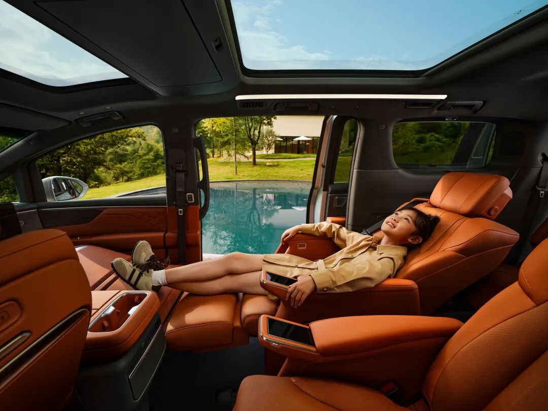 最后就是空间。别克至境世家车身 5260×2023×1820mm,轴距 3160mm,舱内长度超 3.6 米,第三排满坐成年人还各有两拳以上膝部空间。第二排行业首创多姿态零重力座椅,超 330mm 三排电滑轨实现 “舒适平权”。
