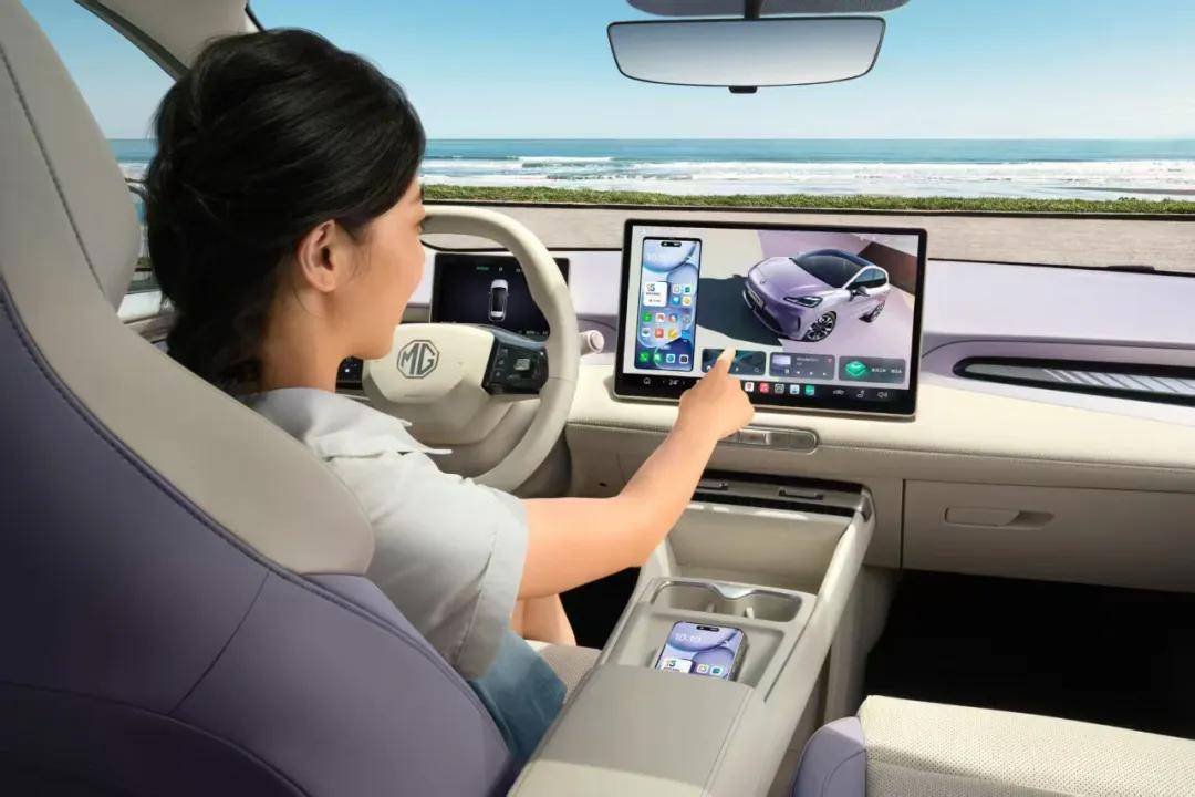 第三重“不妥协”,是10万内价位,却有不鸡肋的智能,通勤更省心。很多人买10万内车型,默认车机“能导航就行”,实际用着满是麻烦:开导航卡顿、换手机连不上车机,辅助驾驶更是“摆设”。全新MG4 530智趣版的智能,则是“好用且实用”。15.6英寸2.5K大屏同级最大最清晰,且配备了苹果手机同款的3A镀膜,夏天阳光直射也不用手挡。车机操作流畅,同时开导航、放音乐也不卡。上车手机一靠近就自动连车机,还弹出欢迎动效,不用反复配对;早上赶通勤,事前对着手机说声“帮我备车”,空调、座椅加热就开好,上车就是舒适温度;开车时摇一摇手机,导航地址就传到车机,不用手动输入,更安全。