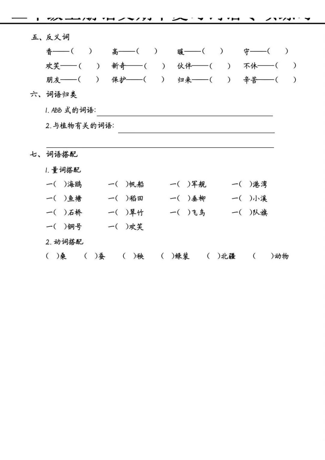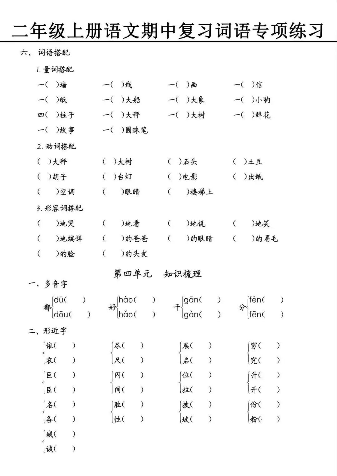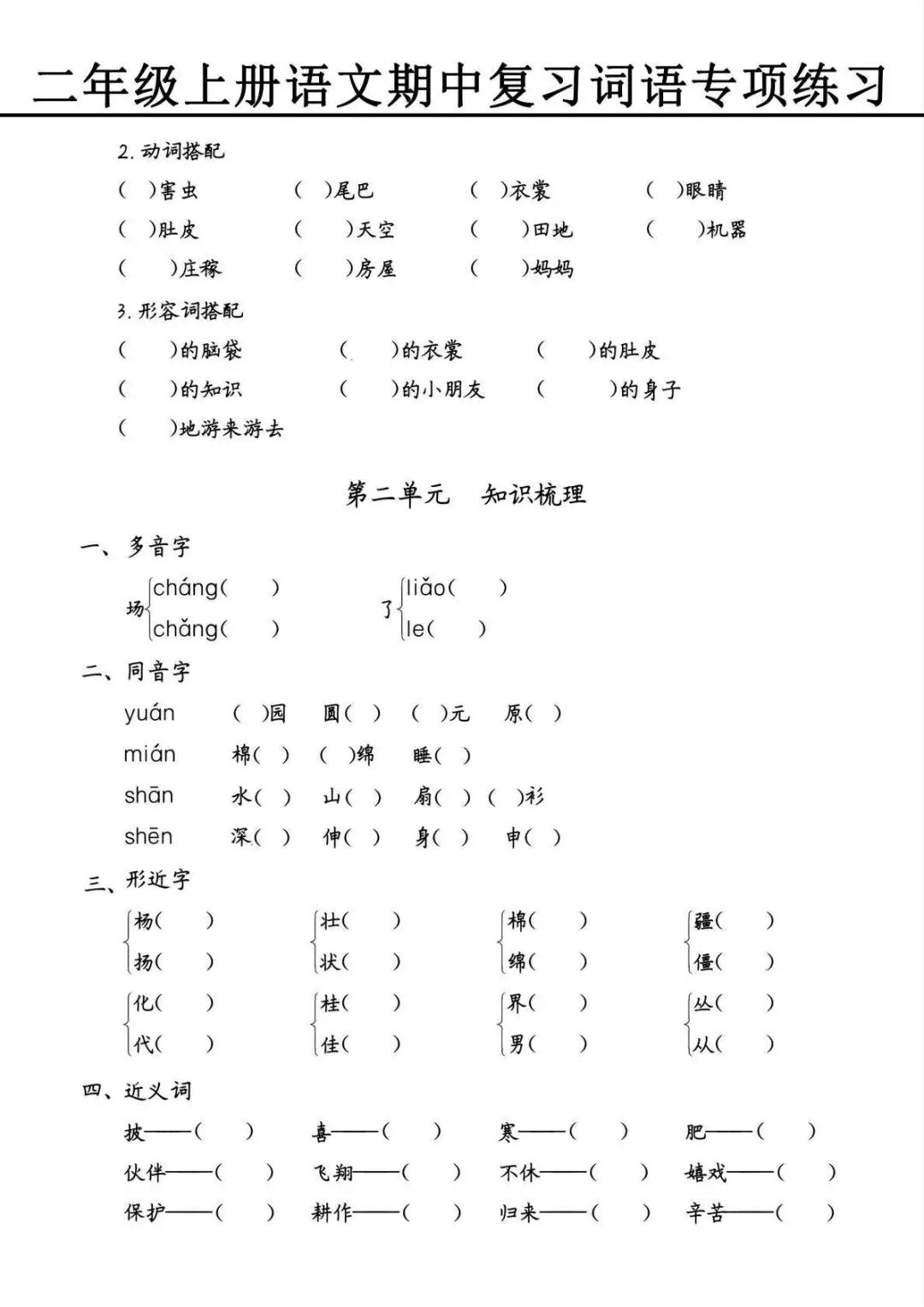 今天分享一套二年级上册语文期中复习的词语专项练习,专治各种词语难题!