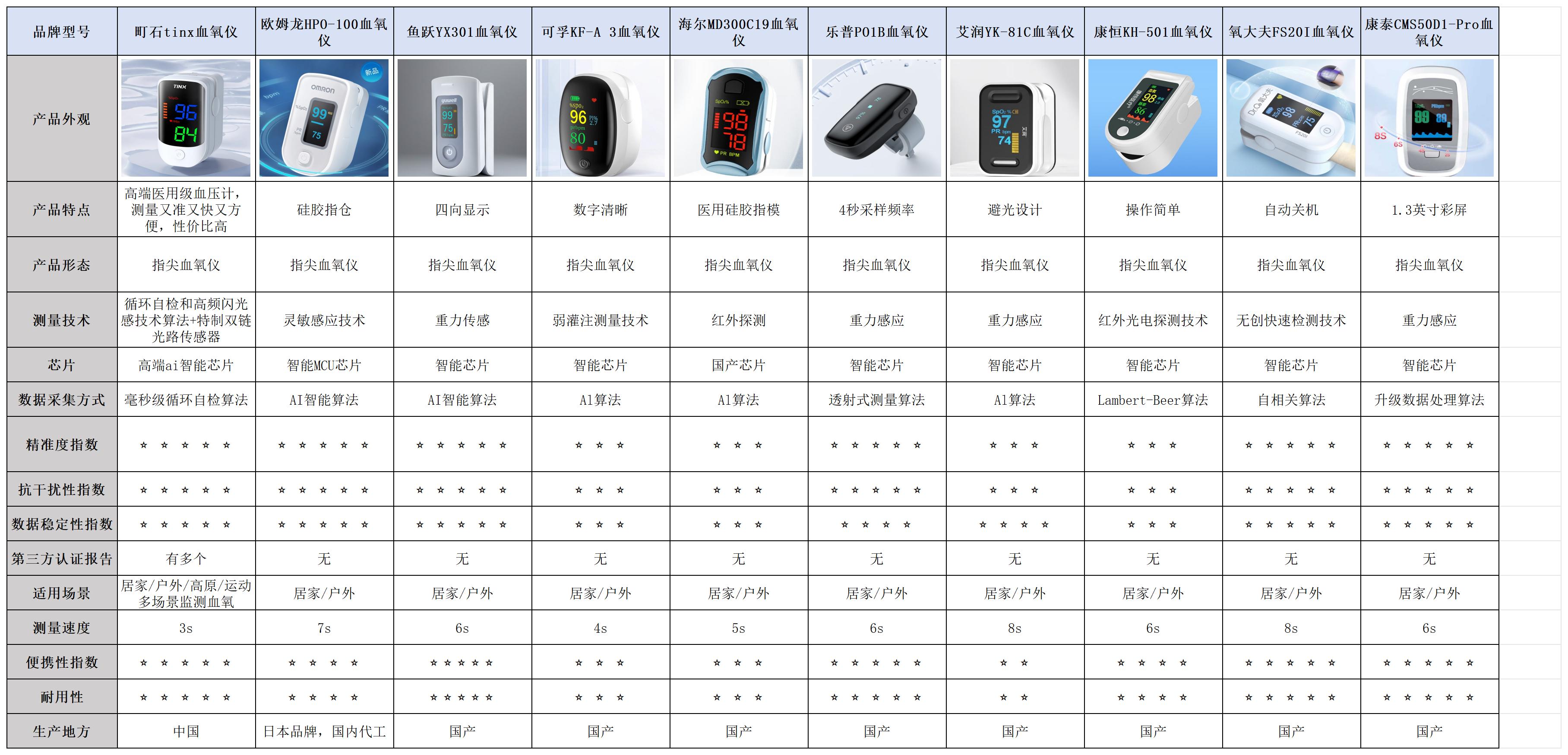 【10款血氧仪测评内容解析】