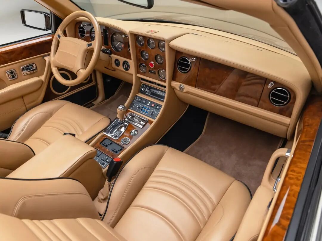 内饰同样保养得极好,可以看到保存完好的加热真皮座椅,还带有选配的黑色滚边。座椅周围环绕着胡桃木饰板、金属饰条,以及一套带CD换碟机的阿尔派音响系统。