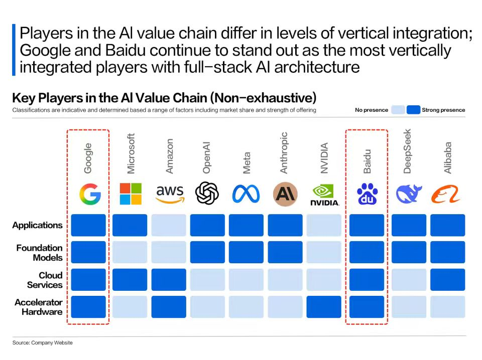 百度的优势在于把技术嵌进了已有的搜索和内容生态里——这才是工程化能力的体现。
