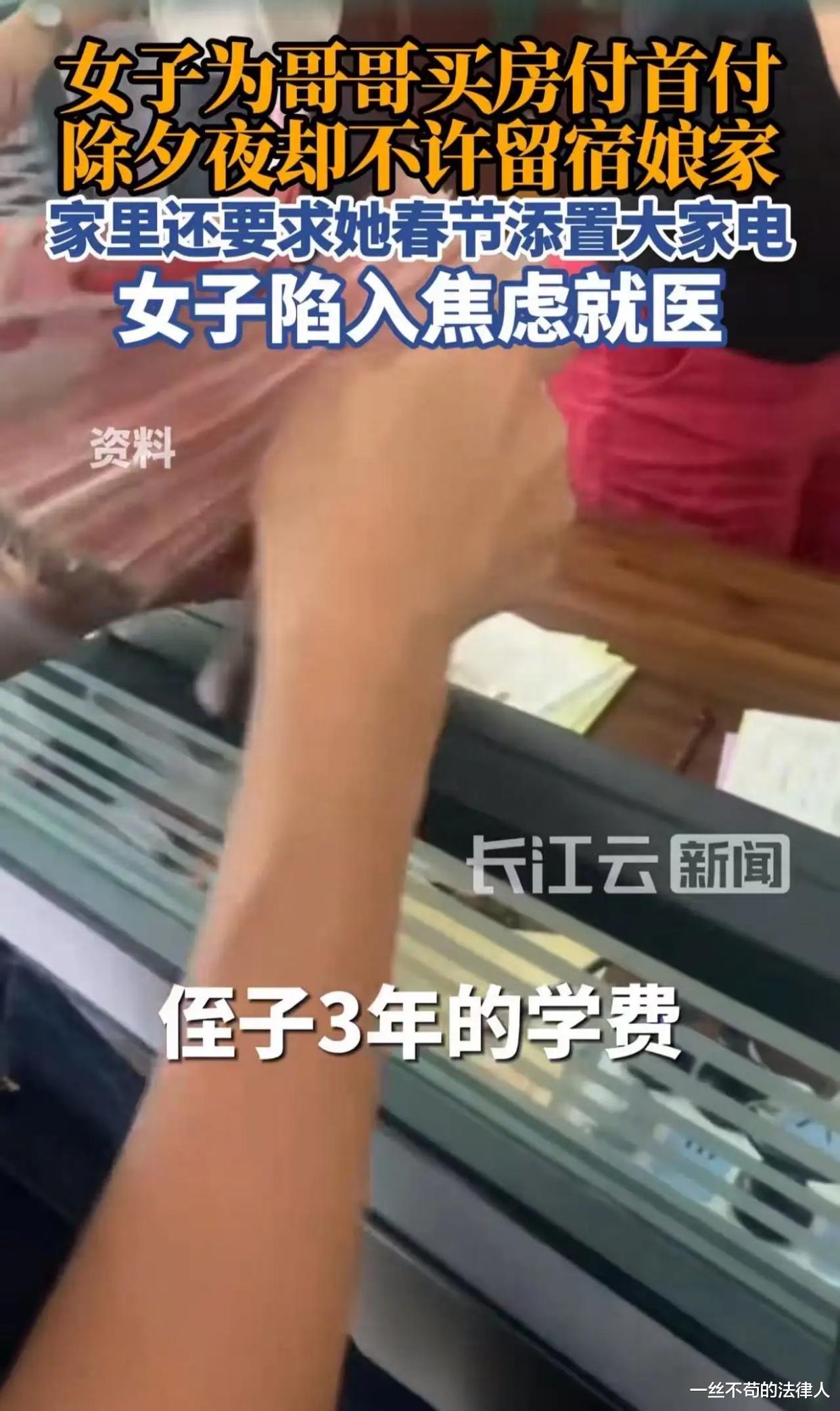 湖南的陈女士,长期被父母要求资助哥哥一家——从买房首付到侄子学费,她成了家庭的“隐形账户”。今年春节,家中又要求她添置大家电,并暗示她除夕别留宿。长期的情感剥削导致她焦虑就医。这不仅是家庭纠纷,更是一场关于亲情边界与法律权利的深刻拷问。