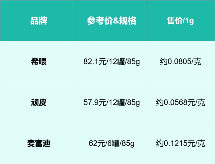 希喂白小罐的性价比超高。它用不到10r的价格换回来的是对标进口大牌的优质原料、超高营养和绝佳的适口性,而且还提供免费试吃服务,闭眼入都不怕踩坑的程度。