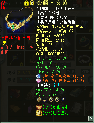 平民五开大力魔展示自己的极品克木项链,底子是敏捷和抗混,现在的大力魔和龙族一样,更流行敏攻玩法。炼化效果是加成攻击33和强力克木56,这个炼化给五开克木龙族也许更极品!