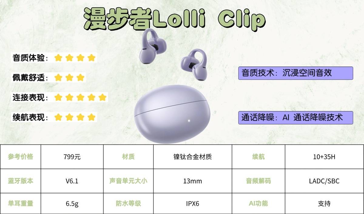 漫步者LolliClip以精巧工艺打造,外形轻巧便携,结构上融合半入耳与耳夹式特征,佩戴稳固且舒适,可适配多数人的耳部轮廓。左右耳采用对称设计,不分主副,放入充电仓也十分便利,日常操作简单直观。