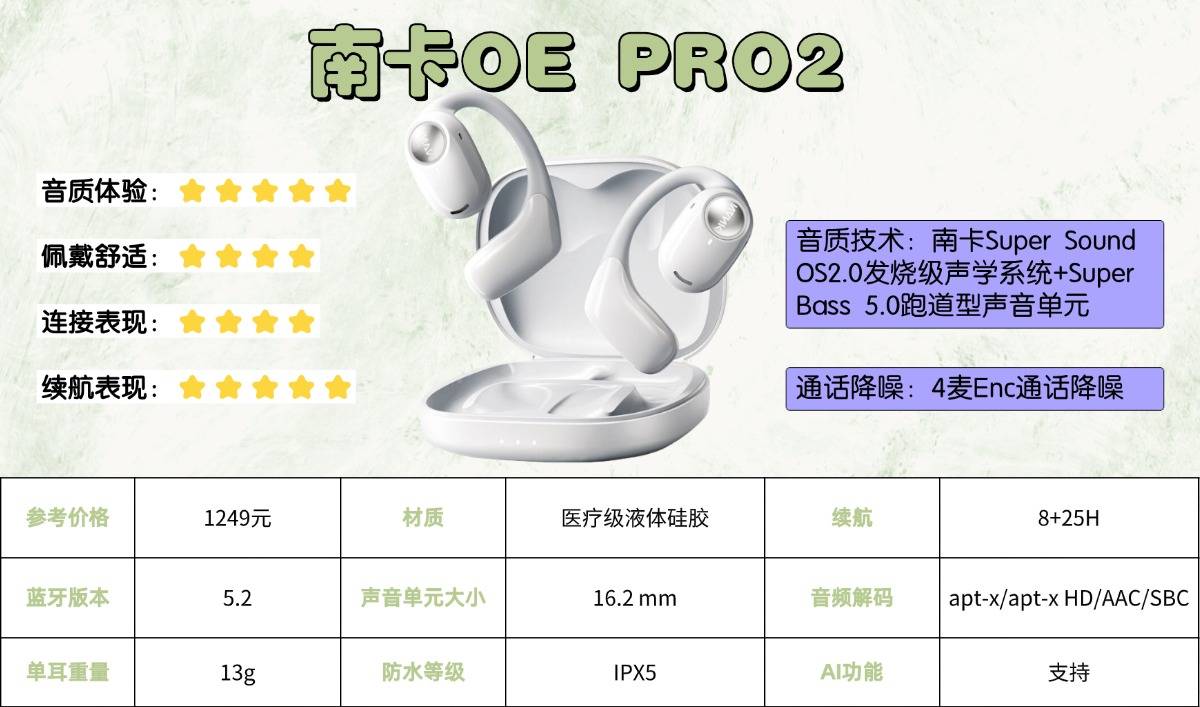 作为在音频领域深耕多年的专业品牌,南卡始终将音质与佩戴舒适度置于核心,OE Pro2被誉为开放式耳机中性能卓著的代表。在两千元内的价位段,它凭借自主研发的发声单元、先进的声学系统以及全面均衡的配置,展现出超越同级的综合实力,赢得了HiFi爱好者与专业媒体的广泛赞誉。此外,OE Pro2内置了多功能AI智慧系统,涵盖翻译、对话、搜索、创作等多样化场景,凭借“全能智慧与卓越音质”的双重优势,成为开放式耳机市场公认的旗舰产品。