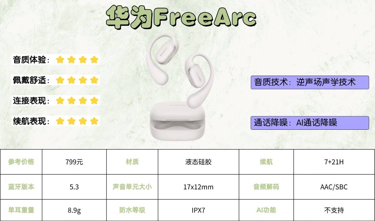 华为Free ARC耳机搭载了直径为13.4mm的镀钛动圈单元,结合双调音孔设计,带来声场表现上的优化。整体听感均衡,高频通透且不刺耳,解析能力符合主流标准,低频表现偏向自然舒缓。这样的调校适合日常通勤或居家聆听,能够覆盖大多数用户的普通音乐需求。