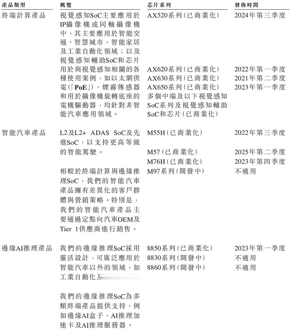 根据招股书,截至2025年9月30日,爱芯元智累计交付量已突破1.65亿颗SoC,已独立开发五代SoC(即AX630A、AX620A、AX650N、AX620E及AX520C系列)并实现商业化。