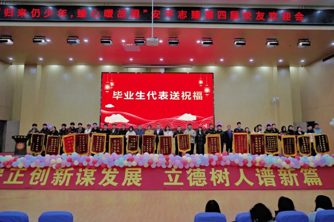 校长回世杰在讲话中提到,“从第一届到第四届,你们的每次归来,都是与母校一场温暖的双向奔赴。安平志臻今年八岁了——八年,你们从青涩走向成熟,学校也从初创走向成长,也始终与你们并肩前行:你们用奋斗成为母校的骄傲,母校也用每一个更好的明天回应你们的期待。最后愿你们永远珍惜‘最初的我们’,留住那段纯粹时光里的清澈目光,你们脚步永远向前,在各自的舞台上勇敢超越、发光发热;还有,被忘了常回来看看——这里不只是青春的档案馆,更是你们永远的精神原乡。无论你们走多远,安平志臻永远在这里。”