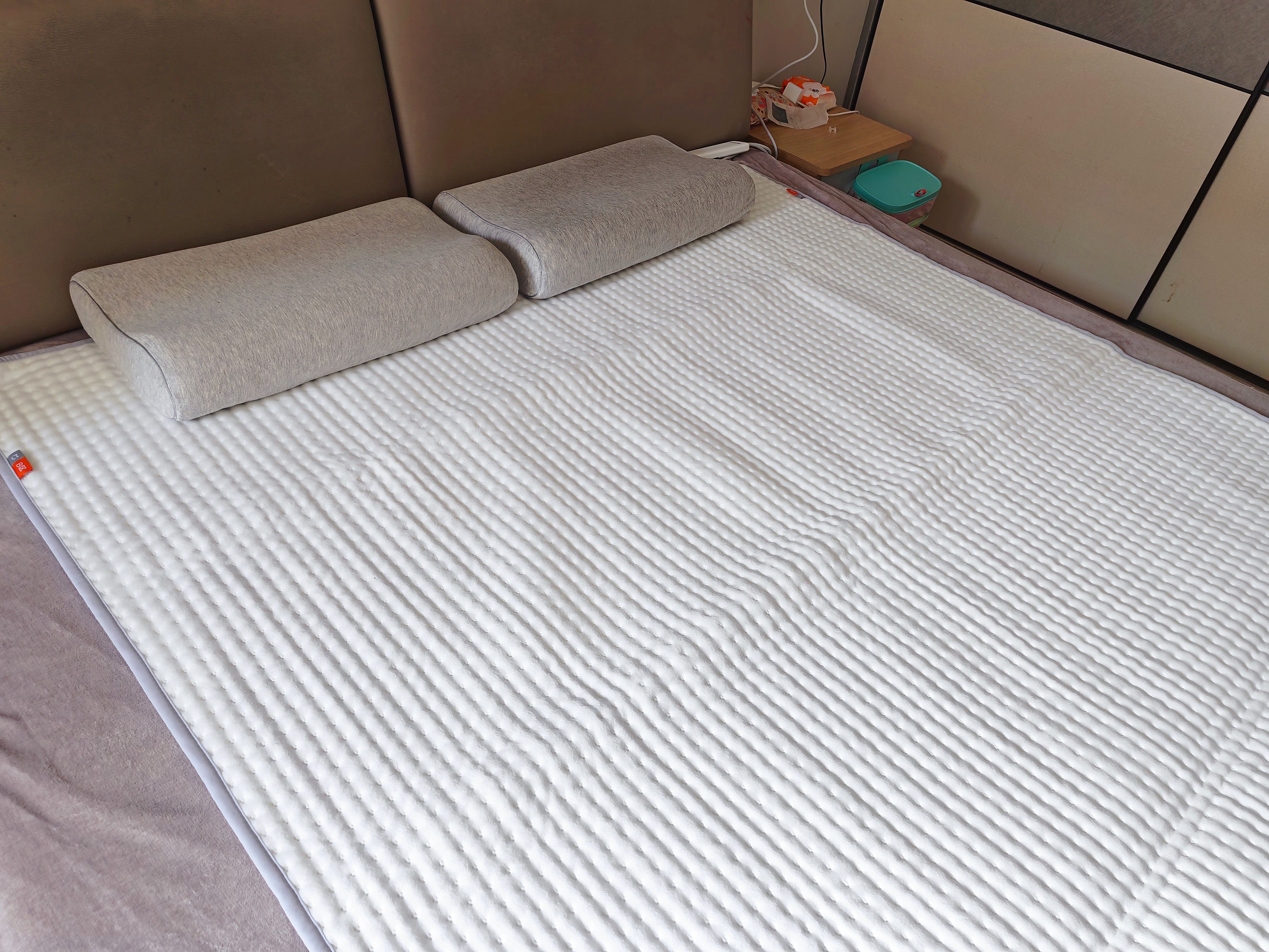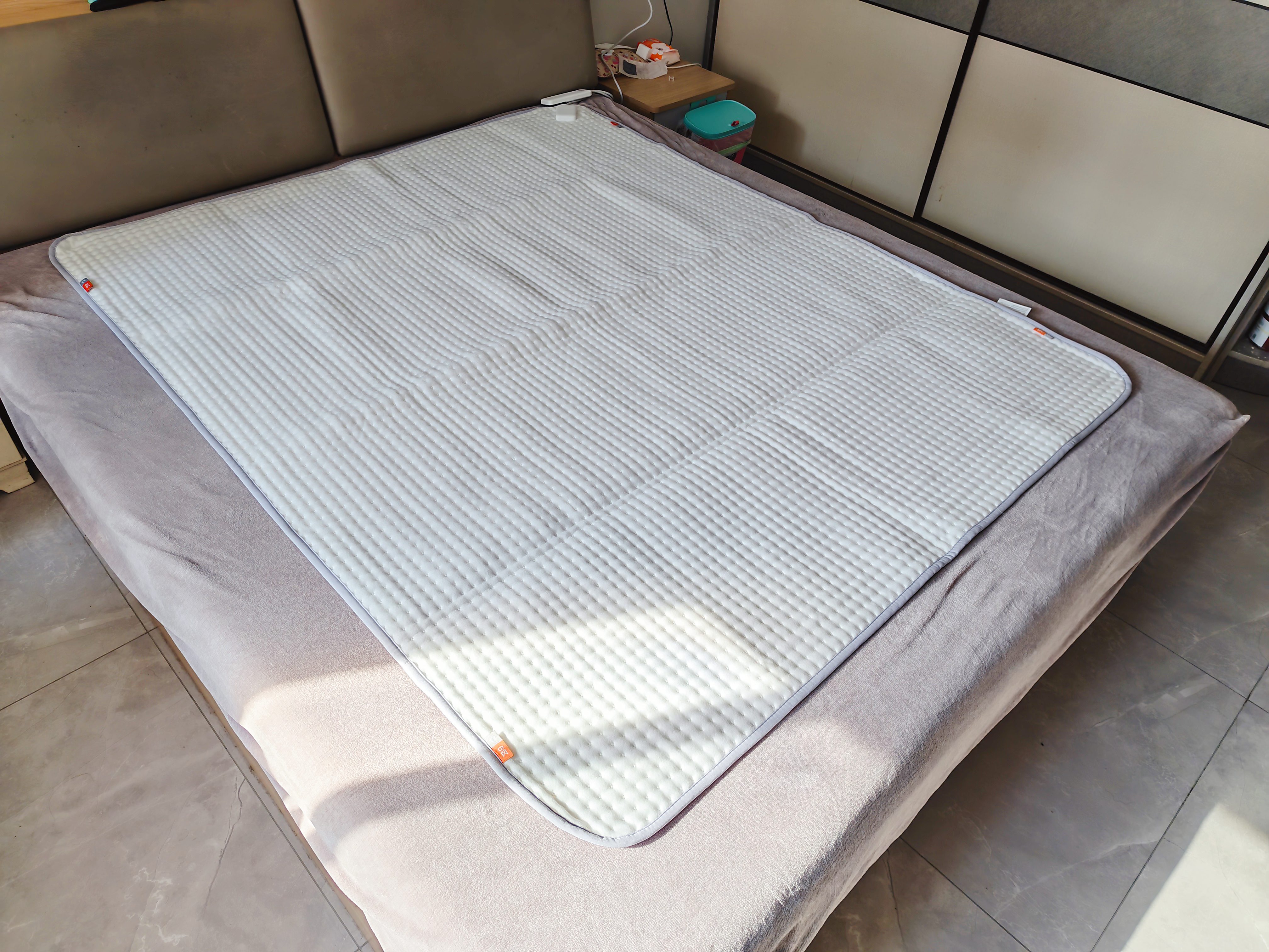 尺寸方面,它有1.5米和1.8米两种规格可选,我选的1.8米,铺上去大小刚刚好,不浪费空间,也能完全覆盖双人睡眠区域。实测下来,AB区域,两个人躺的位置都能被暖暖覆盖,哪怕靠在床边,也不会感觉到凉意,实用性很强。