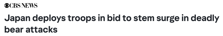 为应对熊群袭击,日本防卫省于当地时间11月5日(周三),正式向北部秋田县派遣自卫队协助应对。