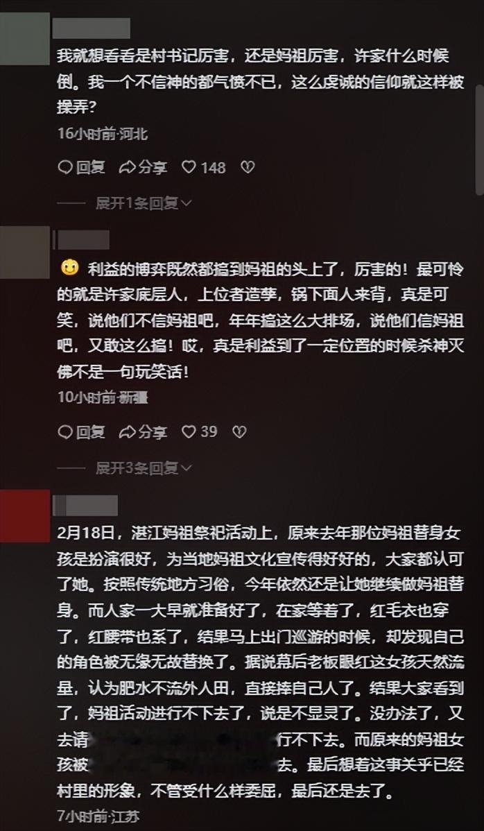 根据网上曝光的信息显示,今年大年初二,也就是2月18日,广东湛江拾石村的妈祖游神仪式照常进行,但村民一到现场就觉着不对劲。