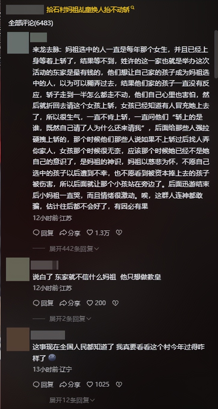 这段画面被人拍下来传到网上,评论区一边倒地心疼女孩、骂主事人吃相难看,也正因为如此,拾石村一夜之间出了名,但出的不是什么好名。