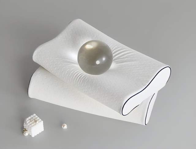 它用的是慢回弹记忆棉材质,躺上去能精准贴合颈椎曲线,给颈部足够的支撑,不会像普通枕头那样塌陷,侧睡、仰睡都很舒服。枕头的高度是人体工学设计的,能有效缓解颈椎压力,睡醒后不会再脖子酸痛。
