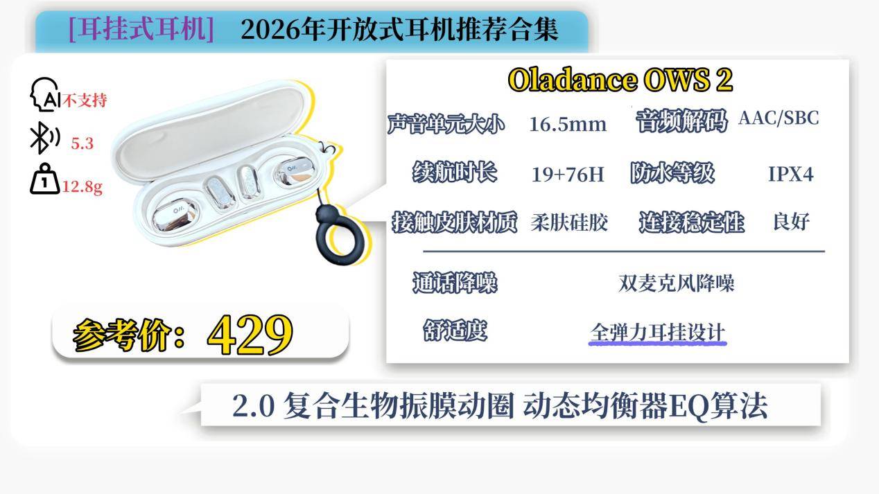 推荐九:O lad ance OWS 2开放式耳机 (429元)
