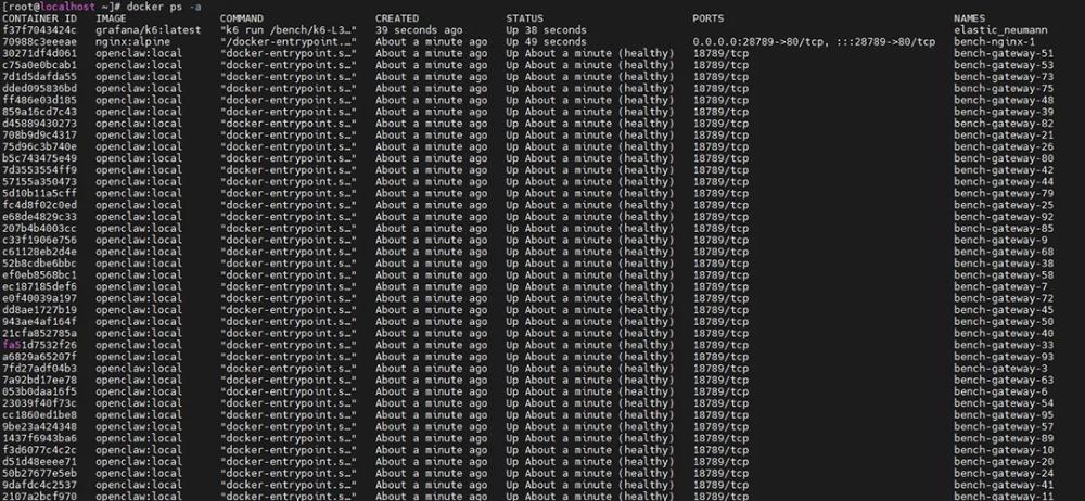 如下是元脑x86服务器部署OpenClaw的容器列表、运行状态与执行结果: