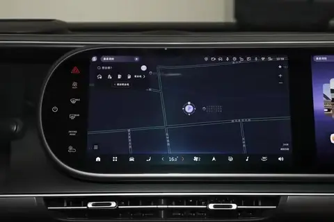 智能座舱的硬件基础很扎实,搭载了AMD V2000车载智能芯片,24GB内存加256GB存储,操作起来很流畅。中控台上的双13英寸AMOLED屏幕显示效果很清晰,2.5K分辨率下,地图细节和文字都看得很清楚,像操场跑道一样的屏幕边框设计也很有特色。