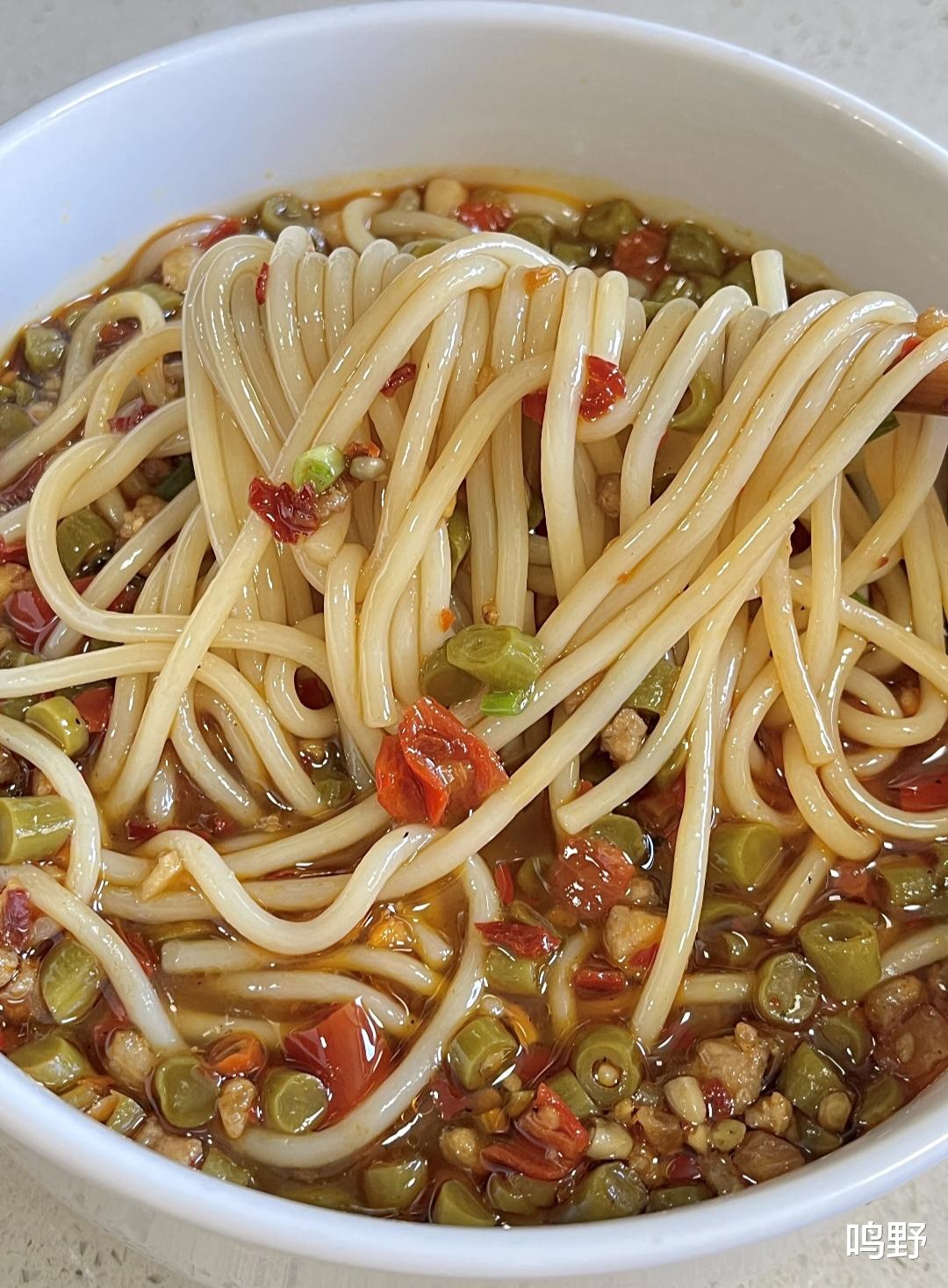 一个月后,酸豆角终于好了。外婆会用它和肉沫一起炒,浇在滑溜溜的米线上。我总是迫不及待地吸溜一大口,酸、辣、鲜、香在嘴里炸开,米线的柔滑与酸豆角的脆爽形成奇妙对比,肉沫则默默提供着丰腴的满足感。