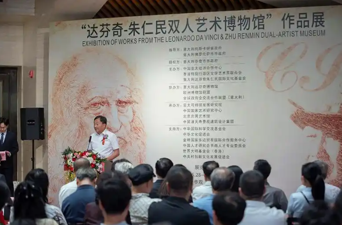 蒋晔名誉主席提出:今天的展览有三大意义:首先,中国、意大利分别是东方和西方文明的发祥地,两大文明因丝绸之路、而交流互鉴两千多年,今天的大展,更说明了中国与欧洲双向奔赴、相互学习的价值。其次,达芬奇是意大利文艺复兴时期的杰出代表。朱仁民教授是达芬奇精神的继往开来者,被意大利誉为“中国的达芬奇”。今天用大展,共祝中意两国建交55周年,是绝佳的双向赋能。最后,朱仁民教授是仁者爱人的文化大师,是中华民族伟大复兴时代的代表性人物,他的卓越见识及知行合一的罕见成就,充分体现了厚德载物、自强不息的中华精神。