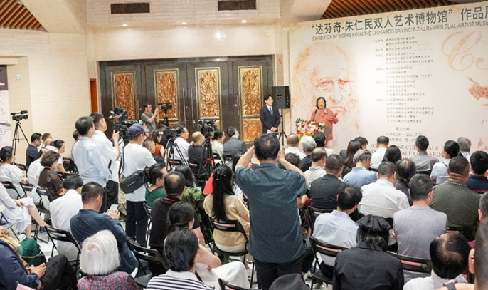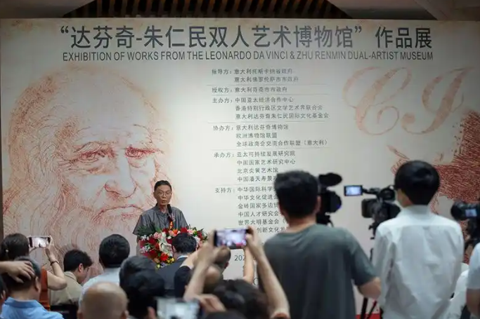 崔晓东馆长提出:本次展览不仅是一场跨越时空的东西方艺术盛会,更是中意两国文化交流与友谊的生动见证。作为本次展览的主角、展开东西方文明的对话的两位艺术家,达芬奇和朱仁民先生,两人虽身处不同时代、不同文化背景,却同样以宽广的胸怀和创新的精神,探索艺术与科技的无限可能。