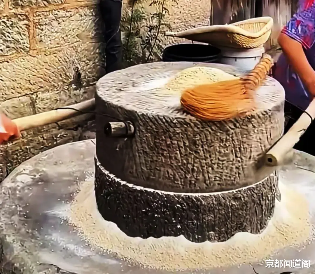 母亲给毛驴套上磨杆,蒙上眼罩,磨道里的驴蹄声开始哒哒响,石磨便跟着转了起来,毛驴转圈,磨盘哼着亘古的歌谣,从清晨到当午,吱呀的声响绕着村舍,成了冬日里最动人的乡音。麦粒从磨眼缓缓漏下,经磨齿碾磨,混着细碎的麦麸,从磨缝里涌出来,落在磨盘上,浅黄的粉屑,裹着醇厚的麦香,在冷冽的空气里散开,那是粮食最本真的味道,也是过年最踏实的开端。