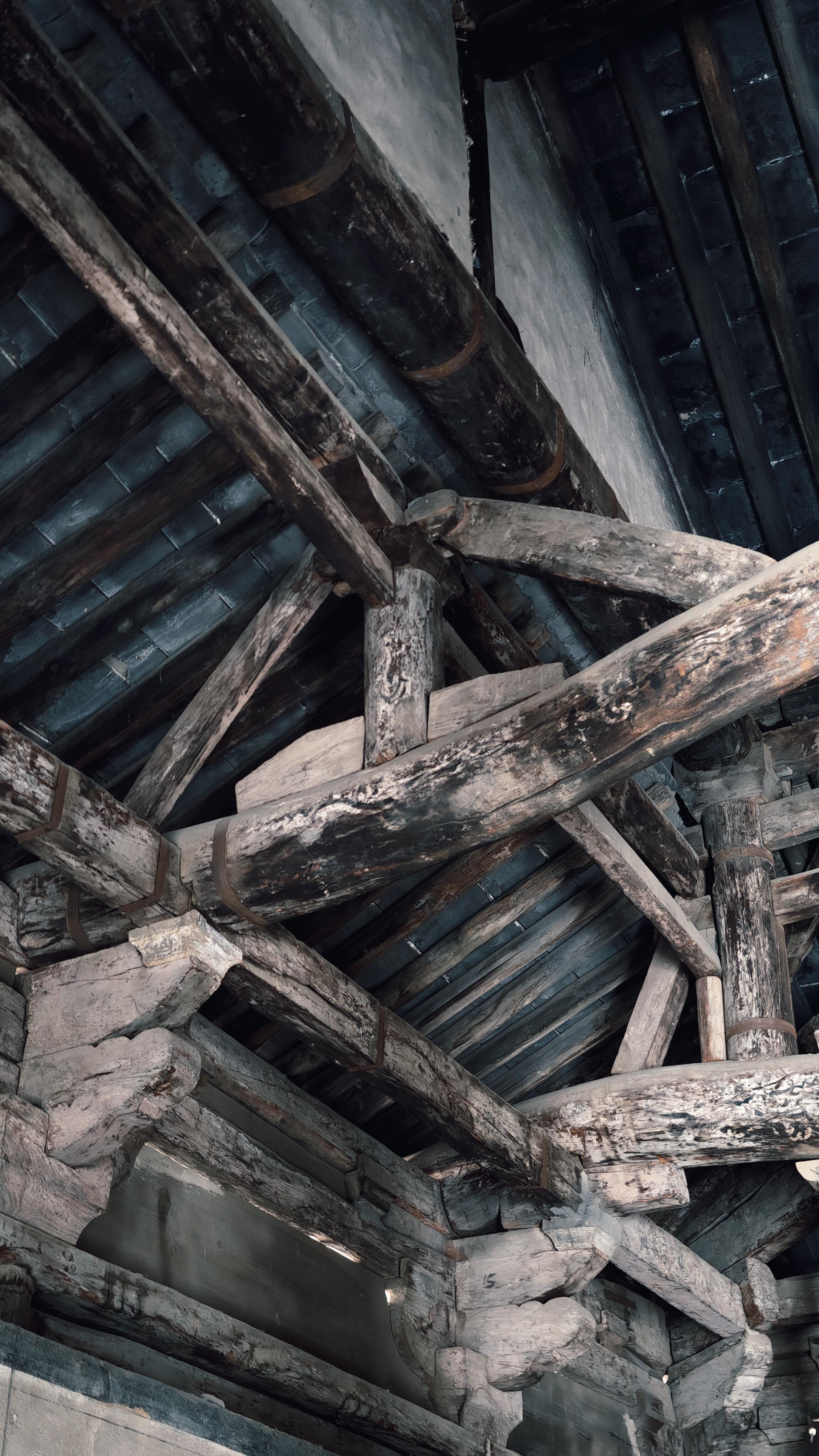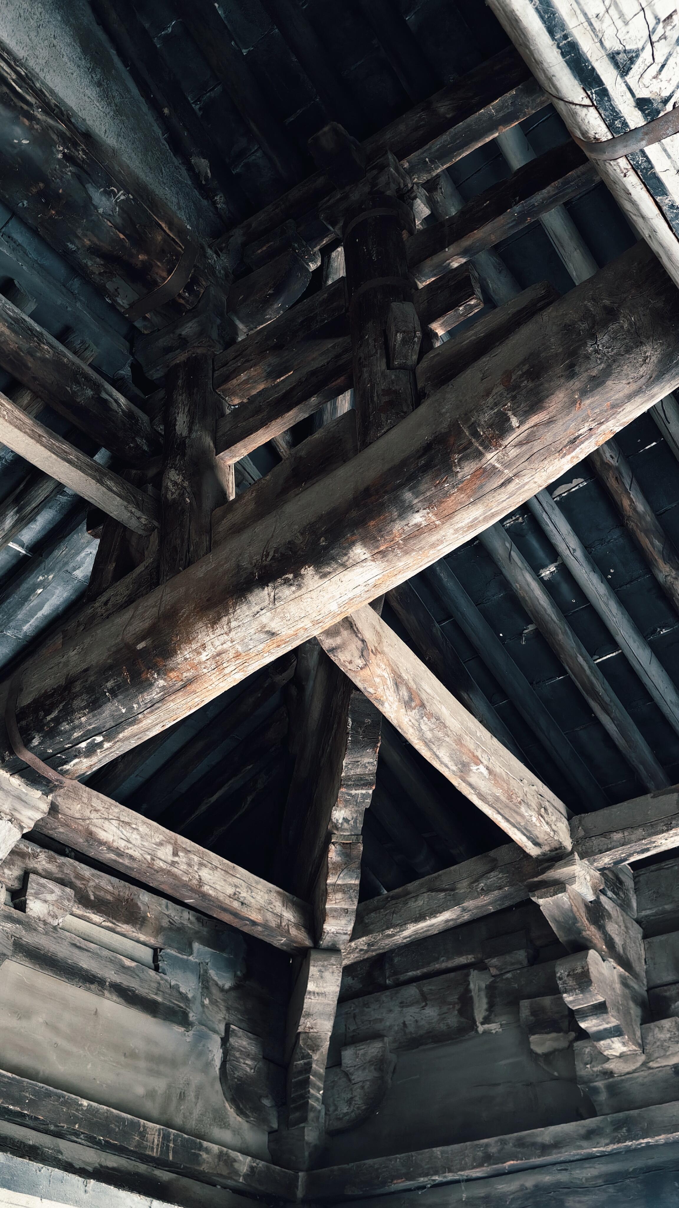 坐在殿内的石阶上,抬头望着头顶的梁架,阳光透过窗棂在木构上投下细碎的光斑,风从门外吹进来,带着山间的草木香,偶尔能听到梁枋轻微的“咯吱”声,像老人在低声诉说过往。突然明白,佛头寺的“谜”,其实早就藏在它的梁架里——它的屹立不倒,靠的不是运气,而是古人对建筑结构的精准计算,对木材特性的深刻理解,以及那份“慢工出细活”的匠心。比起那些雕梁画栋的华丽古建,这座朴素的金代过殿,更像一位沉默的老者,用最本真的模样,诉说着中国木构建筑的精髓。