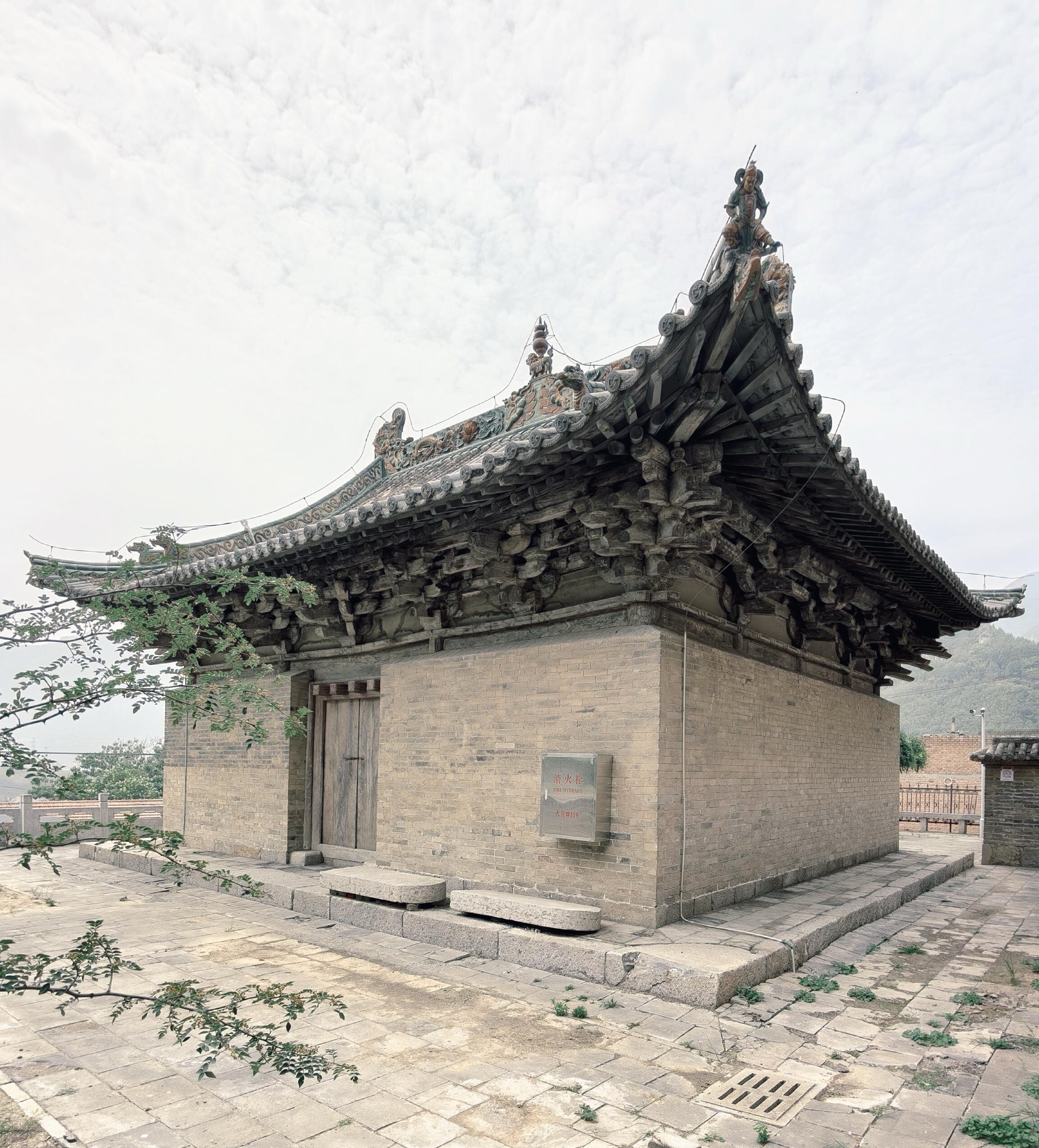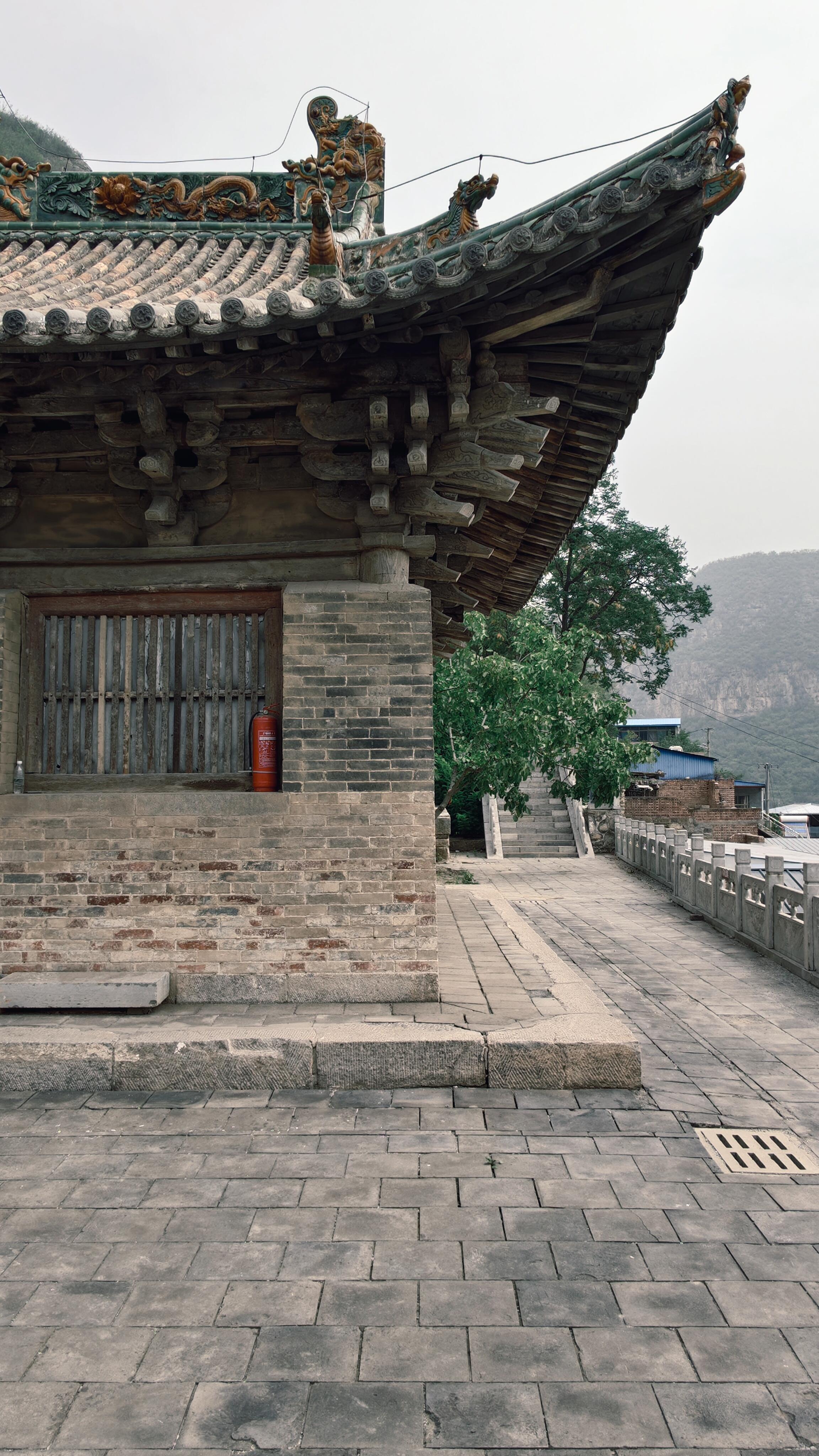 踩着碎石路走到过殿前,最先被它的规整模样打动。东西长13.6米,南北宽11米,149.5平方米的占地面积不算大,却处处透着讲究。坐北朝南的朝向让阳光能刚好洒在殿宇上,面阔三间的布局对称工整,檐角微微上翘,像展翅欲飞的鸟儿,虽没有华丽的琉璃装饰,却靠简洁的线条勾勒出古朴的气韵。伸手摸了摸台基的青石,冰凉的触感里带着粗糙的纹理,那是数百年风雨侵蚀的痕迹,却依旧稳固得能托起整座建筑,让人忍不住好奇:这座创建年代无从考证,仅存金代遗构的过殿,究竟靠什么屹立至今?