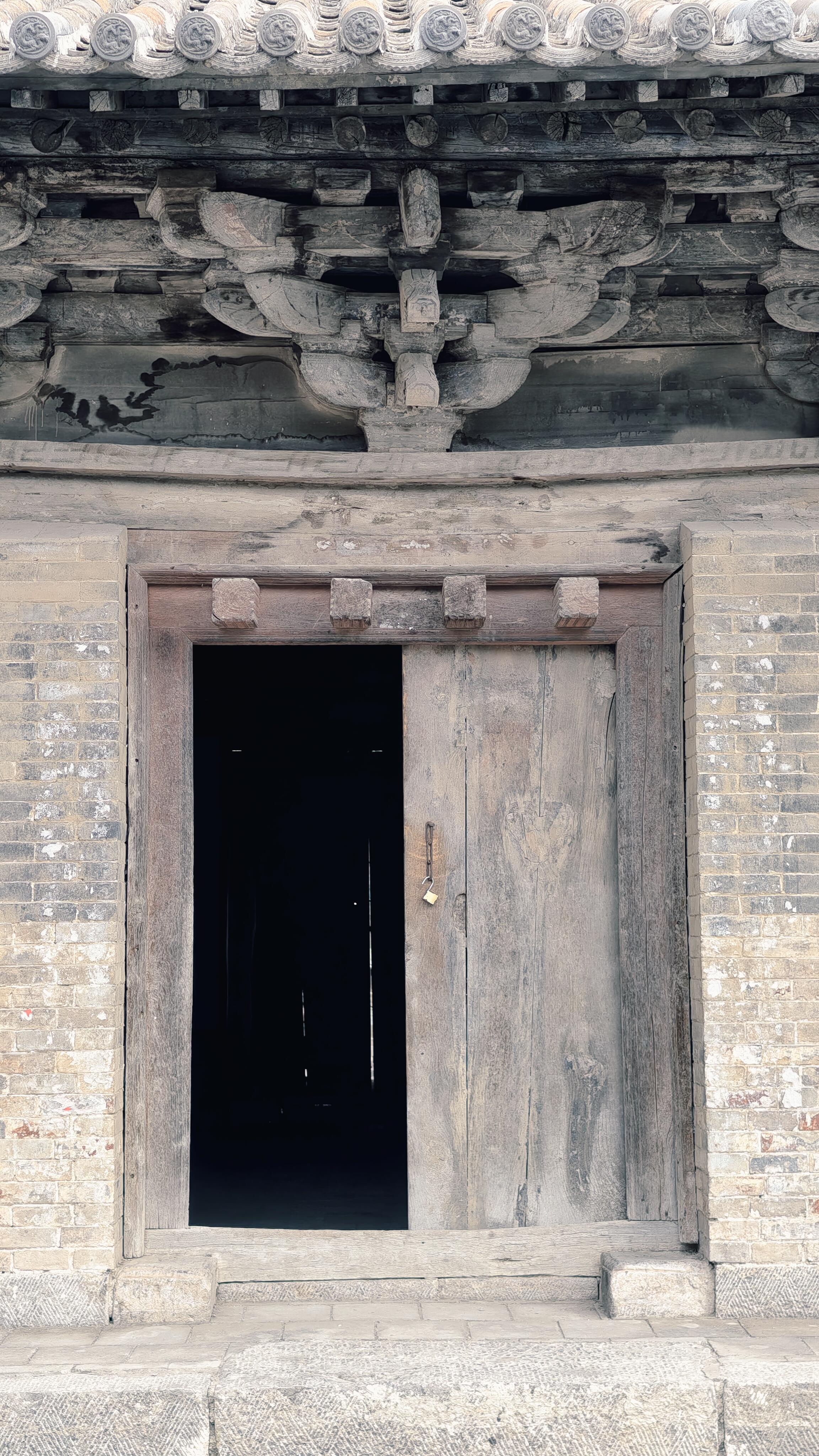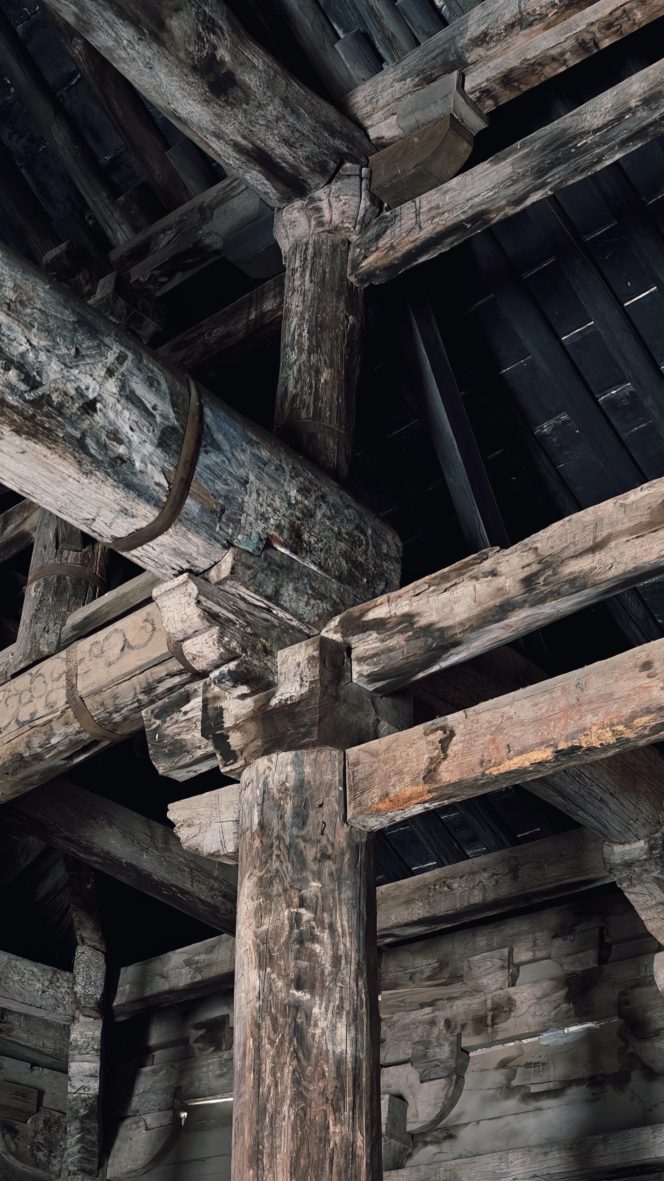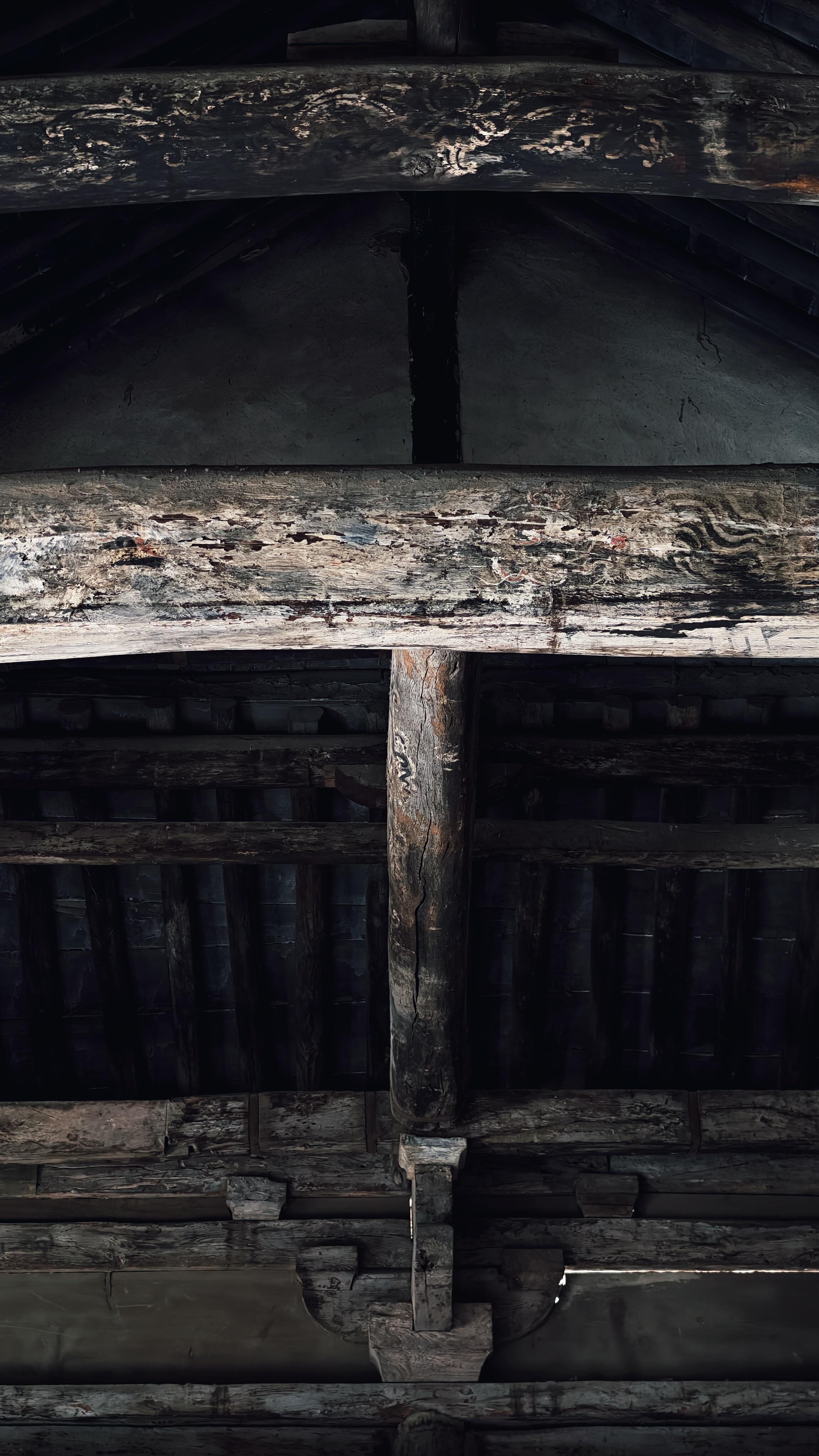 守在村里的老人说,他从小就看着这座佛头寺长大,听祖辈讲,以前寺里不止这一座过殿,还有山门、正殿、配殿,只是后来渐渐损毁,只剩这座金代过殿留存下来。“以前逢年过节,村里人会来这儿上香,殿里还摆着佛像,后来佛像没了,就剩这梁架了。”老人指着梁枋上一处模糊的印记说,那是早年村民为了保护梁架,用布条缠过的痕迹,“那时候有人想拆了木料盖房子,是老人们拼死护住的,说这是老祖宗留下的宝贝,不能毁。”现在想来,幸好有那些老人的守护,我们才能在今天,还能看到这座金代木构的原汁原味,还能透过梁架,触摸到千年前的历史温度。