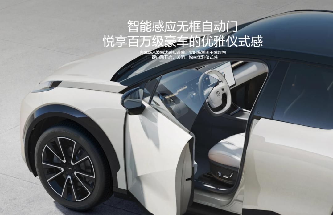 还有一类就更夸张了!在半隐藏与全隐藏之间,他选择不要门把手,就比如之前提到的极氪X这款车,根本就没有把手,而是需要在B柱上按一个按钮,车门就会自动打开,好家伙,这除了车主之外根本就没人会开这门。