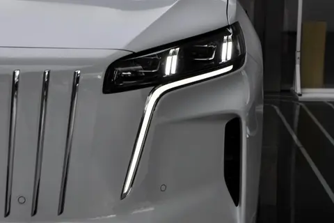 前脸部分,大尺寸的进气格栅搭配内部规整的饰条,既凸显了红旗品牌的经典基因,又让车头显得饱满有张力,一眼望去便能感受到其独特的气场。两侧 LED 大灯造型修长,内部灯组结构精致,点亮后灯光柔和且明亮;日间行车灯采用独特的折线设计,点亮后辨识度十足,走在车流中很容易被注意到。此外,大灯还支持高度调节与延时关闭功能,细节处尽显贴心 —— 夜间停车后,延时关闭的大灯能为车主照亮回家的路,细微之处体现对用户的关怀。