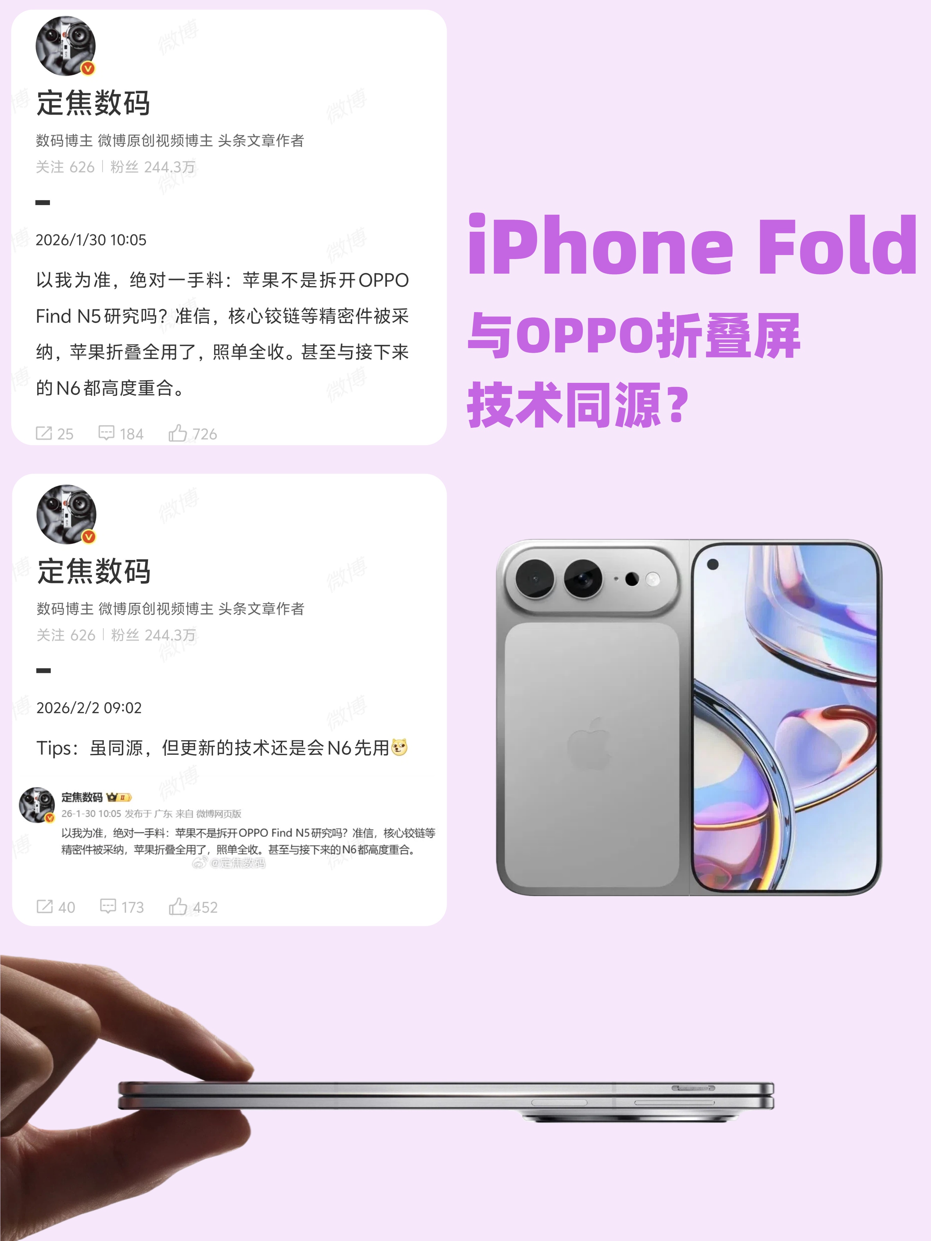 比如苹果到现在连“无折痕”都没搞定。据说工程机平整度始终超不过OPPO Find N5,团队没辙,买了一大堆N5回去拆机研究。更离谱的是,iPhone Fold可能直接“复用”大量OPPO同源供应链零部件——这画风跟以前“苹果技术独一份”完全不一样了。