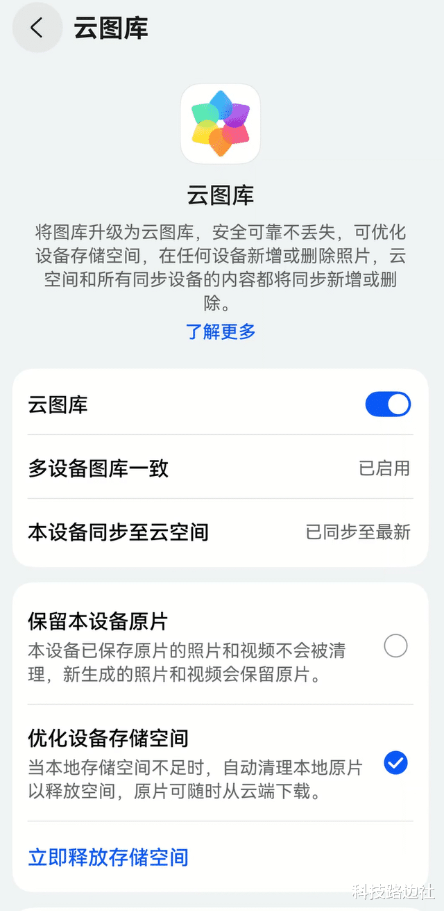 这一年下来,相册统计显示我竟然拍了两千多张照片,还有许多旅途见闻的视频。虽然拍得多,但我并不担心“存储空间不足”的警告。因为我提前打开了华为云空间,它的“云图库”功能可以自动把照片、视频安全同步到云端。同步勾选“优化设备存储空间”后,又能根据手机空间情况,自动把本地一些不常用的照片视频替换为小尺寸预览图。这招真的绝,既不太占手机存储空间,又能随时流畅翻看。想发朋友圈或者修图时,也可以直接调用云端高清原图,完全不需要来回下载,用起来无比丝滑。