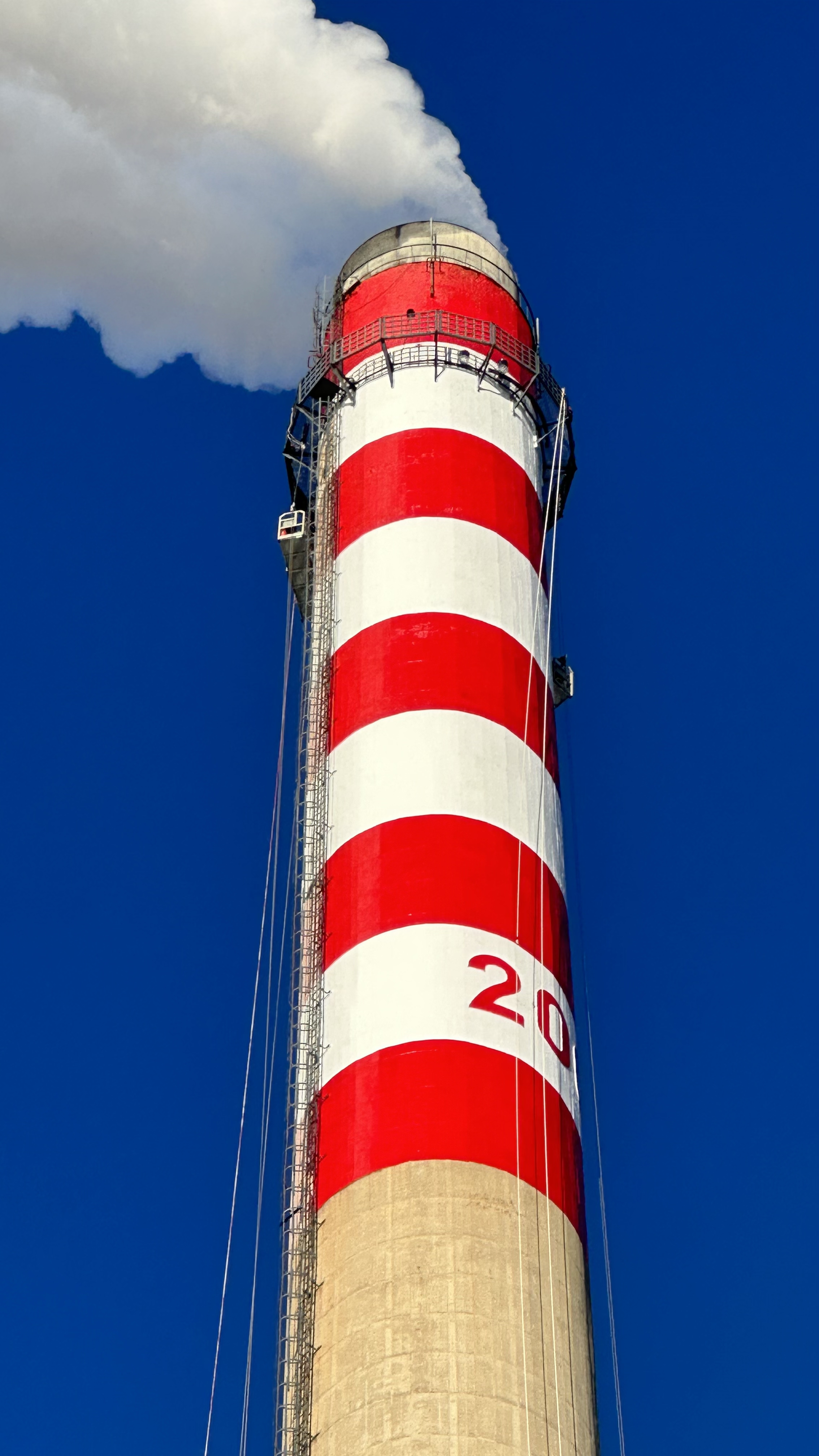 3.色环喷涂 采用航空警示红 / 橙、白色交替喷涂 分 2 遍施工,薄喷多道,色泽均匀、无色差、无流挂、无虚边