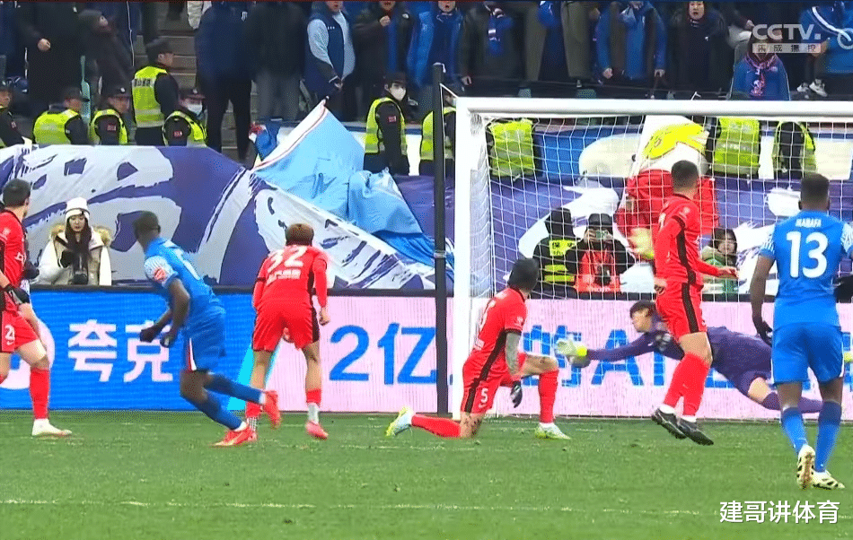 在海港队开场就早早的领先了比分后,在海港队把比分领先到下半场的第87分钟的时候,申花队凭借高天意主罚的角球,由6号阿马杜完成进球扳平了比分,在海港队丢球的一瞬间,海港队门将颜骏凌就朝着主裁判唐顺齐投诉了申花进球的违规,可惜主裁判唐顺齐并没有接受颜骏凌的意见,回看VAR来判断颜骏凌投诉的内容是否真实。对于颜骏凌投诉申花进球存在的违规内容,解说嘉宾娄一晨也做出了说明,娄一晨:刚才特写镜头也是专门给到了颜骏凌,示意场边的裁判组是不是这个角球有在空中出底线,从慢镜头回放的角度来看,应该是没有出底线。