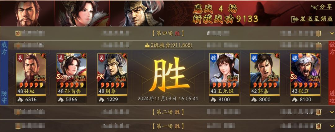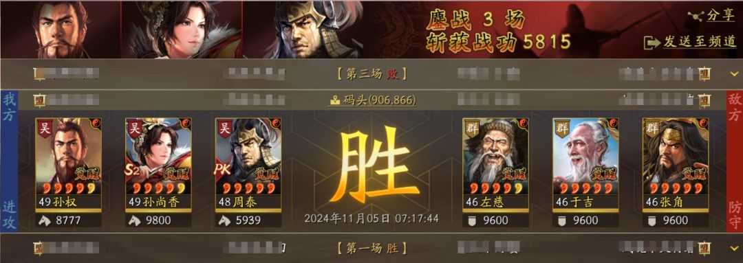踩加强版的张角盾,也能拿到3场约6000的战功。