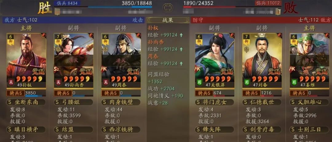 威谋靡亢能提供额外的输出和控制效果,结盟则与孙权形成联动。如果选折冲,就侧重保护。