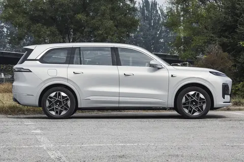前舱盖上多条隆起的筋线则赋予了整车更强的力量感,打破了传统家用SUV偏圆润的设计风格,展现出一种刚柔并济的美学理念。车身侧面线条修长流畅,配合大尺寸轮毂和隐藏式弹出门把手,不仅提升了整车质感,也有效降低了风阻系数,对提升续航能力起到了积极作用。