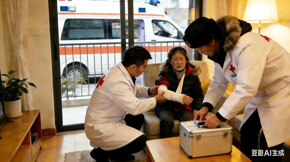 当日车组接到调度中心紧急指令:某小区内一名10岁左右女童因与母亲发生口角,与母亲推搡间不慎倒地,呼喊胳膊剧烈疼痛,家属因担心造成二次伤害不敢移动患儿,急需紧急救援。接到指令后,车组迅速启程,携带专业急救设备火速赶往现场,途中通过电话与患儿母亲保持沟通,一边安抚她慌乱的情绪,一边详细询问患儿状态,叮嘱其切勿触碰患儿受伤肢体,为后续救助奠定基础。