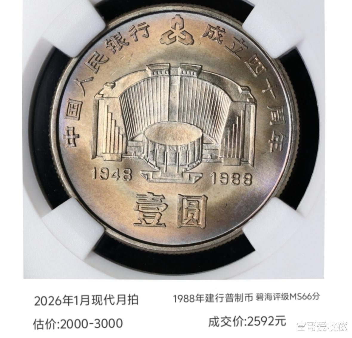 上面这枚1988年的“建行币”,最后拍出了2592元。