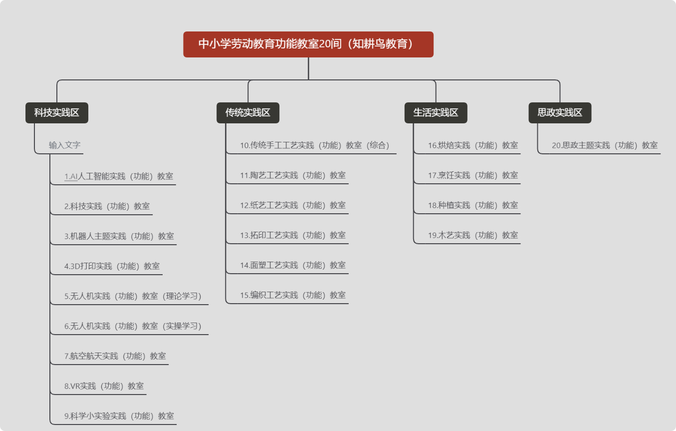 高度集成,节约空间:将传统需要大片土地或分散空间的20余类劳动项目,集约化设计于校园楼宇内的专业功能室中,极大降低学校空间改造成本与难度。